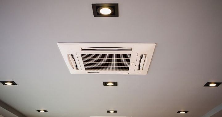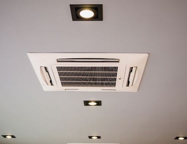 Instalación de equipos cassette de techo, muy utilizados en oficinas, comercios y locales por su capacidad para distribuir el aire de forma uniforme en espacios amplios.